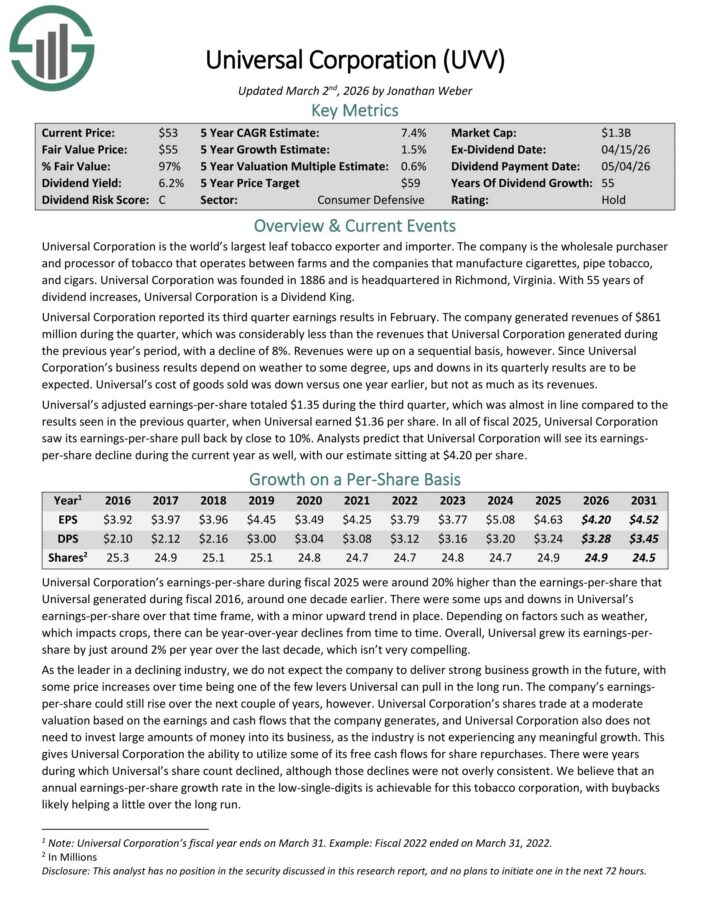 In all of fiscal 2025, Universal Corporation saw its earnings-per-share pull back by close to 10%.