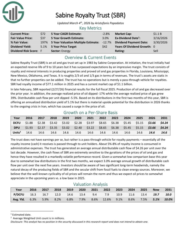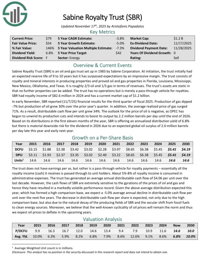 The trust’s assets are static in that no further properties can be added. The trust has no operations but is merely a pass through vehicle for royalties. SBR had royalty income of $82.6 million in 2024 and has a current market cap of $965 million.