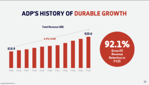 Many competitive advantages fuel ADP’s growth. ADP has a deep connection with its customers and enjoys a strong reputation for customer service, which helps maintain very high customer retention.