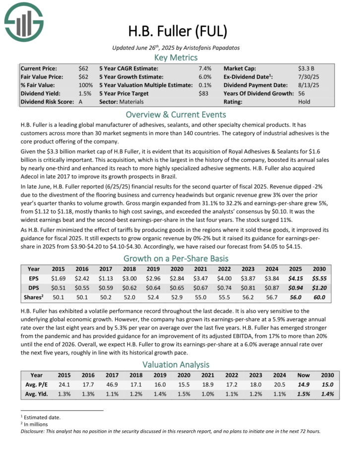 - Dividend King To Hold Forever: H.B. Fuller Company (FUL)