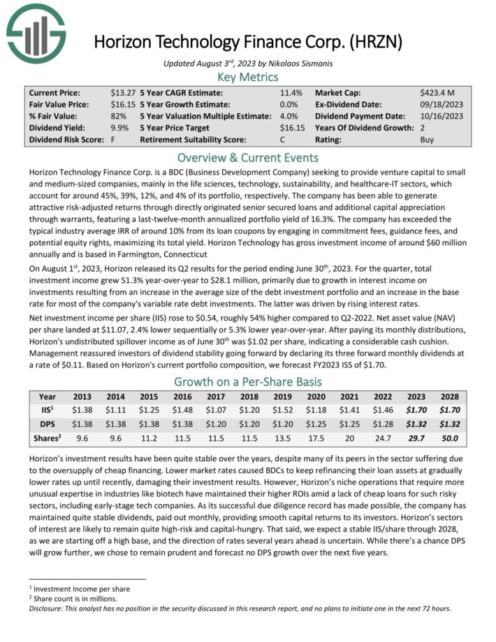 Click here to download our most recent Sure Analysis report on HRZN (preview of page 1 of 3 shown below):