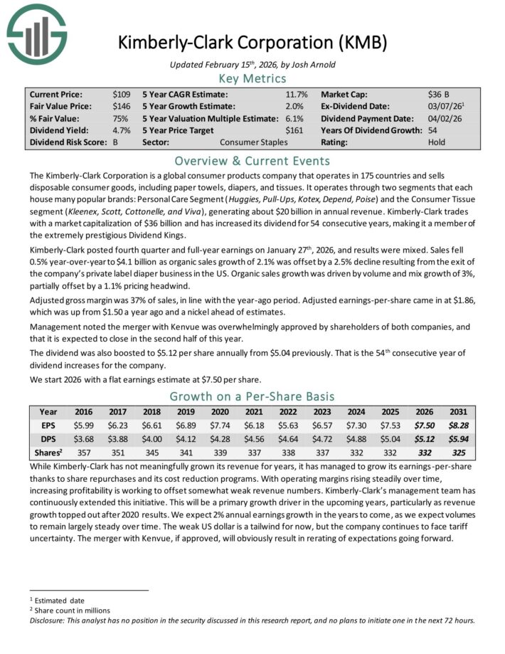 - High Dividend Stock For The Long Run #9: Kimberly-Clark Corp. (KMB)