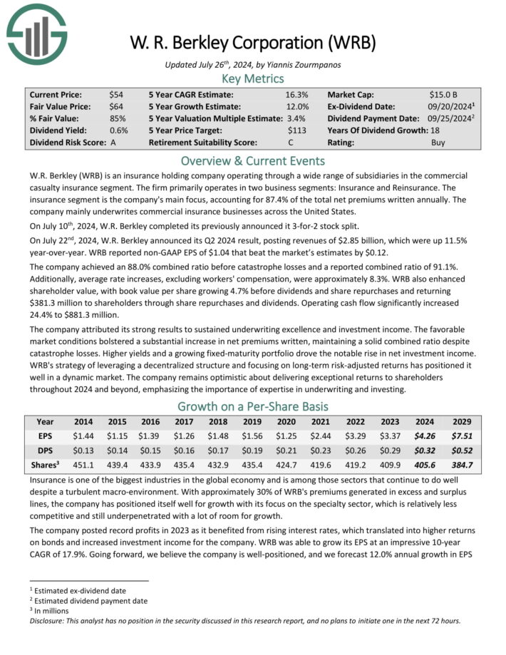 Due to this, insurance companies have been among the most rewarding to own over the past several decades. In fact, many of the Dividend Aristocrats and Dividend Achievers are in the insurance industry.
