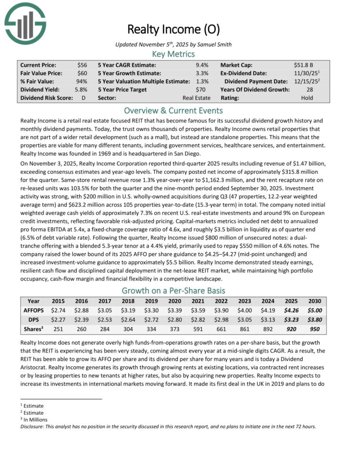 Click here to download our most recent Sure Analysis report on Realty Income (preview of page 1 of 3 shown below):