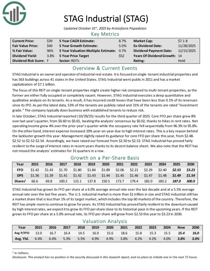 - Monthly Dividend Stock For The Long Run #4: STAG Industrial (STAG)