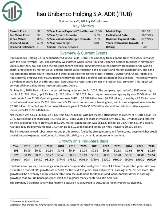 - Cheapest Monthly Dividend Stock #5: Itau Unibanco Holding S.A. (ITUB)
