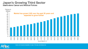 Aflac has enjoyed strong demand in Japan for third-sector products due to the country’s aging population and declining birth rate.