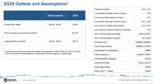 For 2025, A. O. Smith expects sales growth to be between flat and 2%, with EPS projected to be between $3.60 and $3.90. North American water heater volumes are anticipated to stabilize, while sales in China may continue declining. India is expected to see continued double-digit growth. The company plans to repurchase $400 million in shares and remains focused on strategic investments, product innovation, and consistent dividend payments to drive long-term growth.