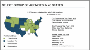 The company has more than 2,000 agency relationships with over 3,000 locations. Many of them also have a meaningful market share, as Cincinnati Financial has grown over the years.