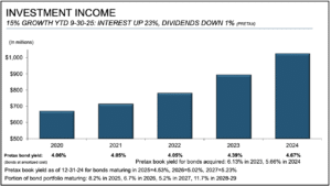 Indeed, much of the company’s cash is invested in common stocks to grow book value over time, with no single stock accounting for more than 5% of the investment portfolio.