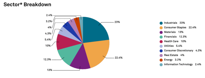 A sector breakdown of the Dividend Aristocrats Index is shown below: