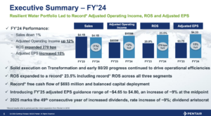 Looking ahead, Pentair introduced 2025 EPS guidance of $4.37 to $4.52 on a GAAP basis and $4.65 to $4.80 on an adjusted basis, reflecting expected earnings growth. The company projects full-year sales to be flat to up 2%, with first-quarter revenue anticipated to decline by 3% to 4%. Stauch reaffirmed Pentair’s commitment to long-term profitability and operational excellence despite economic uncertainties, emphasizing continued investments in key growth areas.