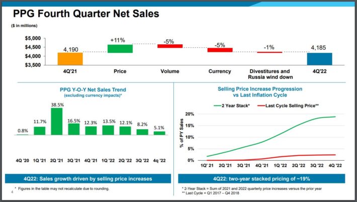 As PPG’s 2020 results showed, the decline in new construction is the dominant factor during a recession. The 2020 recession was no different, as PPG faced factory shutdowns and severely reduced consumer demand, although that proved to be transitory.