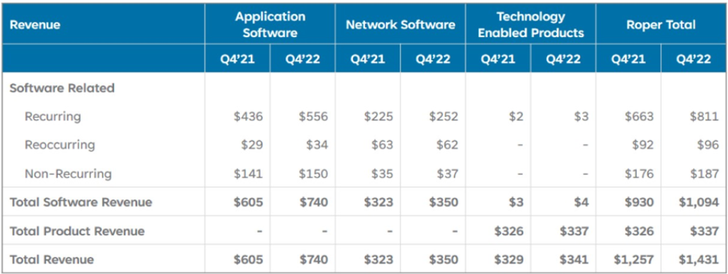 Roper designs and develops software, including both software-as-a-service and licensed technology, and engineered products and solutions. Roper has a diverse portfolio of products and services, which it provides to a multitude of sectors, including healthcare, transportation, food, energy, water, and education.