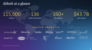 Abbott operates in four main segments: Nutritional Products, Established Pharmaceuticals, Diagnostics, and Medical Devices, and enjoys a leadership position across product segments.
