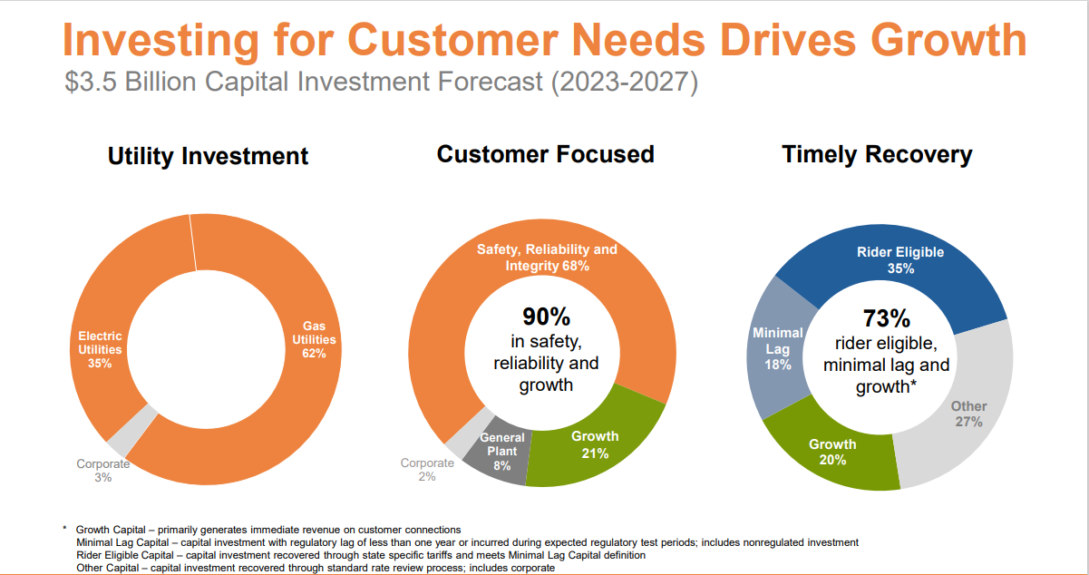 The company has 1.34 million utility customers in eight states. Its natural gas assets include 49,200 miles of natural gas lines. Separately, it has ~9,200 miles of electric lines and 1.4 gigawatts of electric generation capacity.