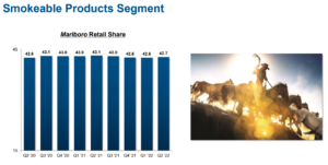 Smokeable tobacco products still comprise the vast majority of Altria’s revenue and profit. The Marlboro brand continues to hold a leading market share in the U.S. market.