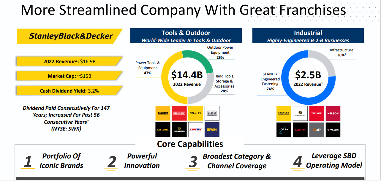 Stanley Black & Decker has become the worldwide leader in tools and related products because of its iconic brands, such as Stanley, DeWalt, and Black & Decker. These names are known and trusted by professional contractors and do-it-yourself customers.