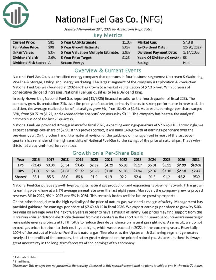 - Dividend King To Build Retirement Income #8: National Fuel Gas (NFG)