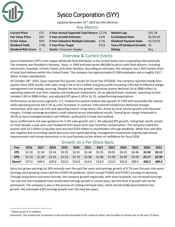Click here to download our most recent Sure Analysis report on SYY (preview of page 1 of 3 shown below):