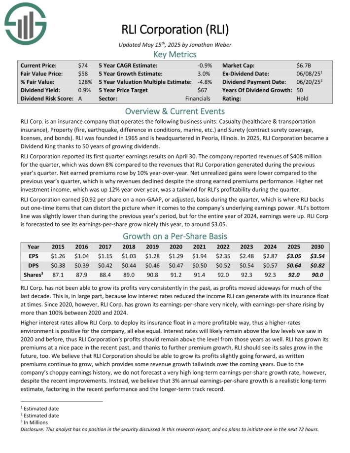 - Dividend King To Hold Forever: RLI Corp. (RLI)