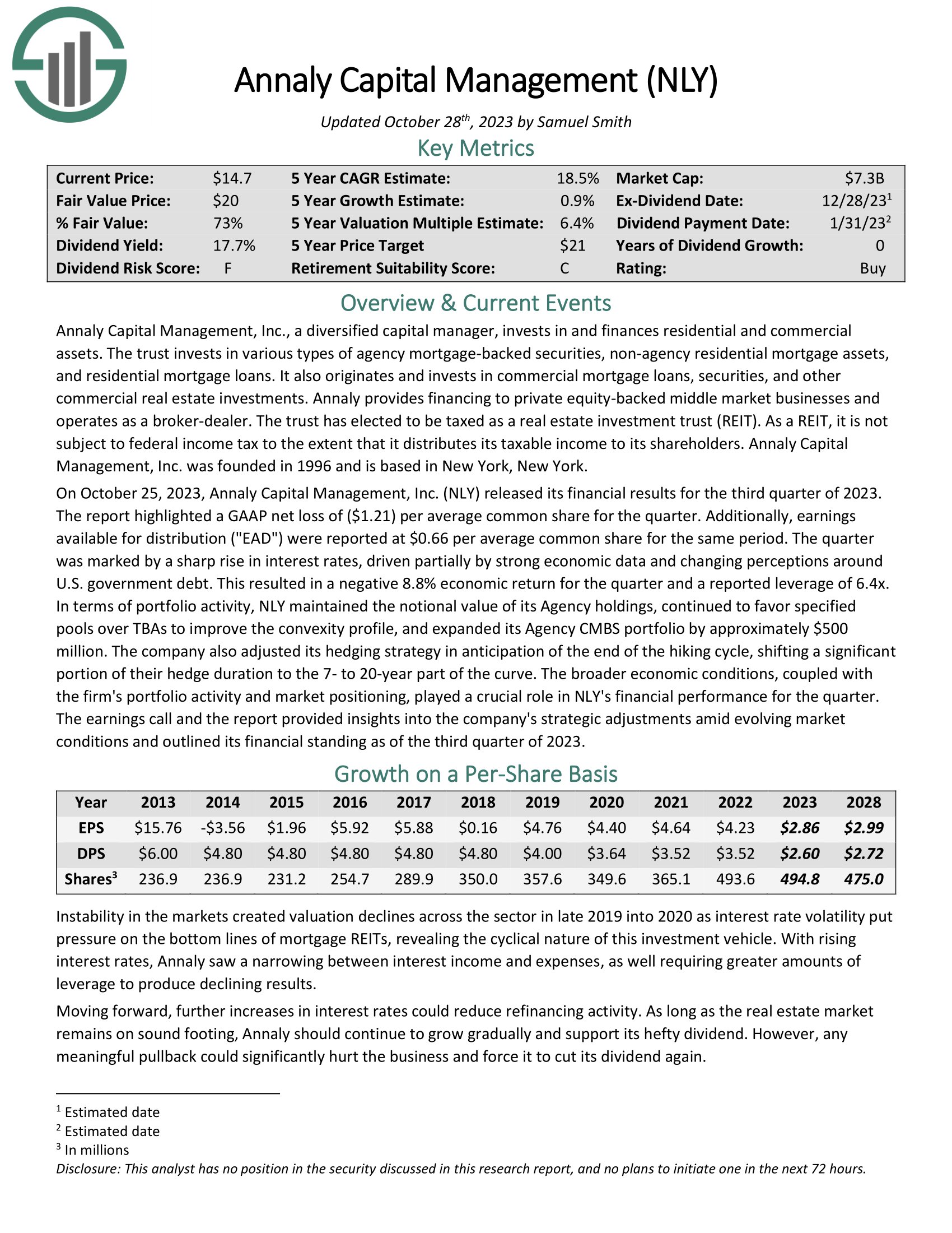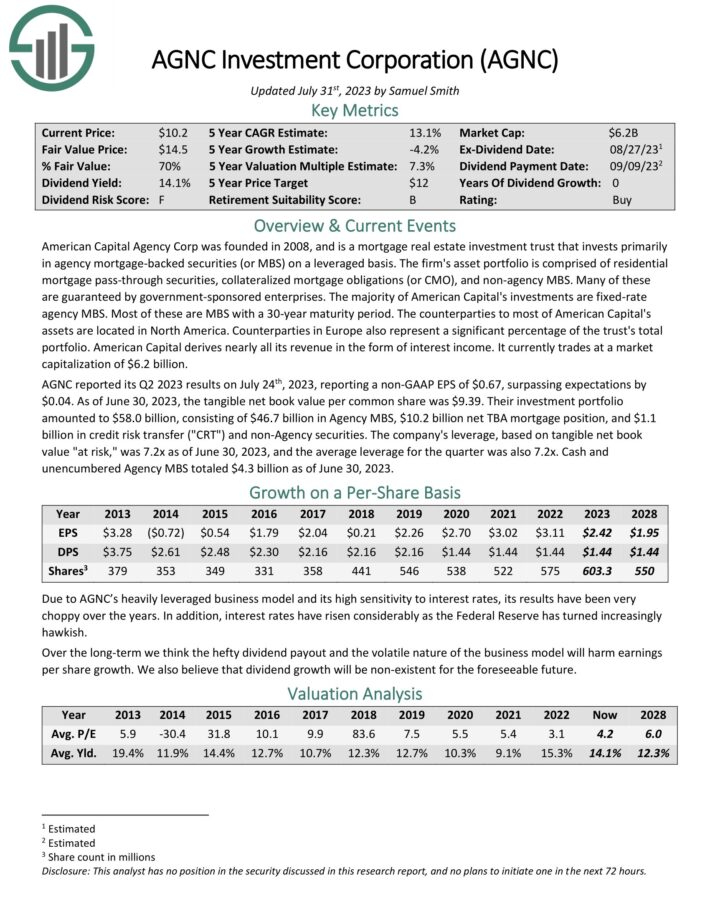 Click here to download our most recent Sure Analysis report on AGNC Investment Corp (AGNC) (preview of page 1 of 3 shown below):