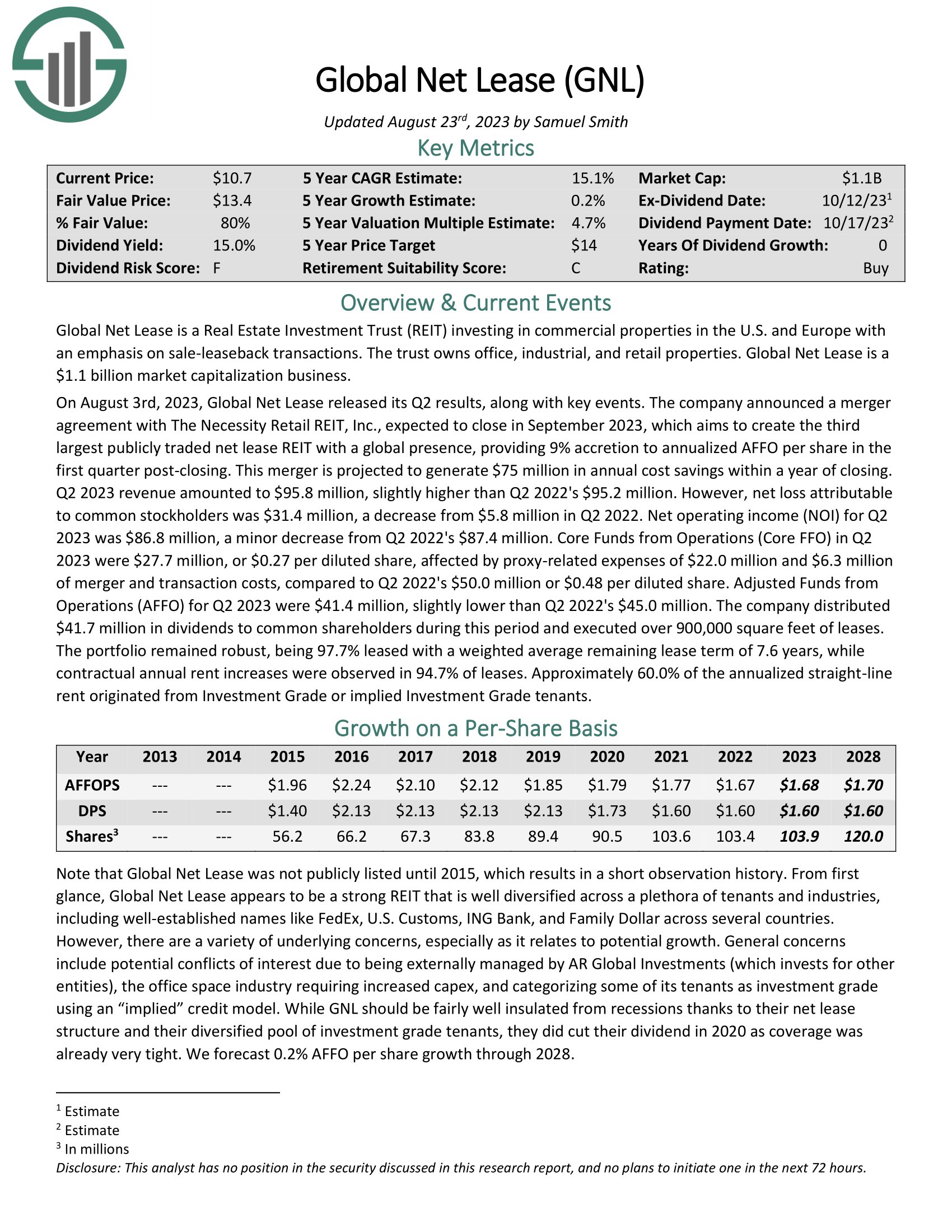 Click here to download our most recent Sure Analysis report on GOOD (preview of page 1 of 3 shown below):