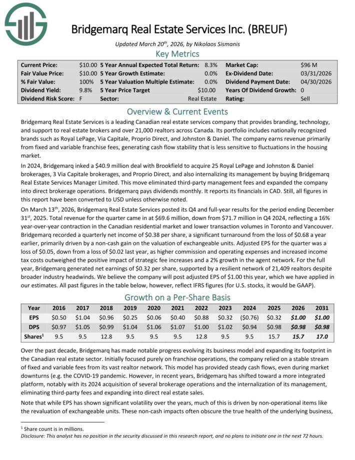- High-Yield REIT No. 9: Bridgemarq Real Estate Services (BREUF)