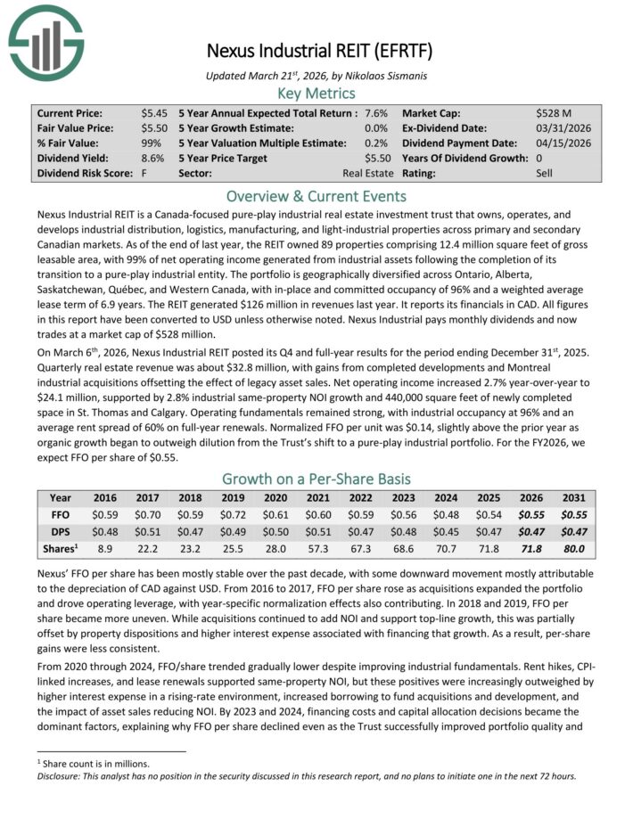 - High-Yield REIT No. 10: Nexus Industrial REIT (EFRTF)