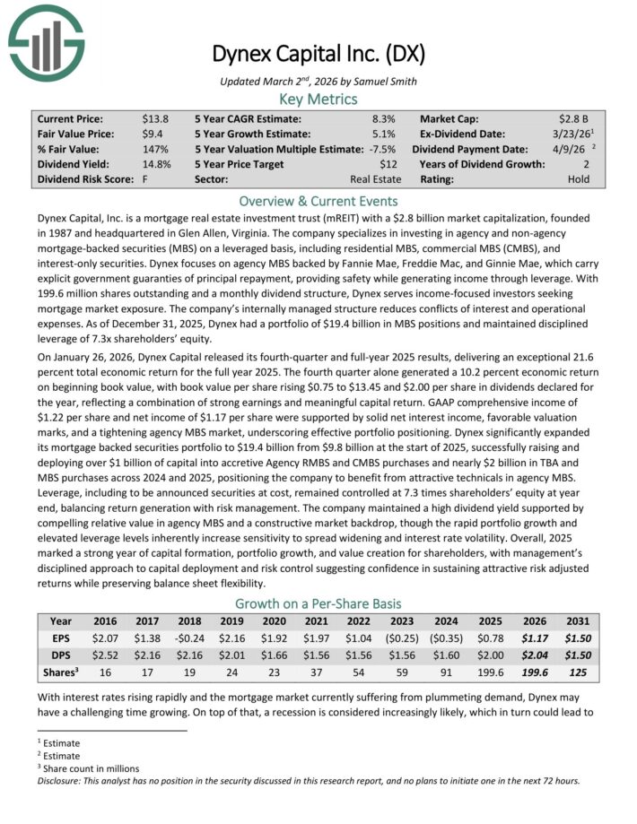 - High-Yield REIT No. 4: Dynex Capital (DX)
