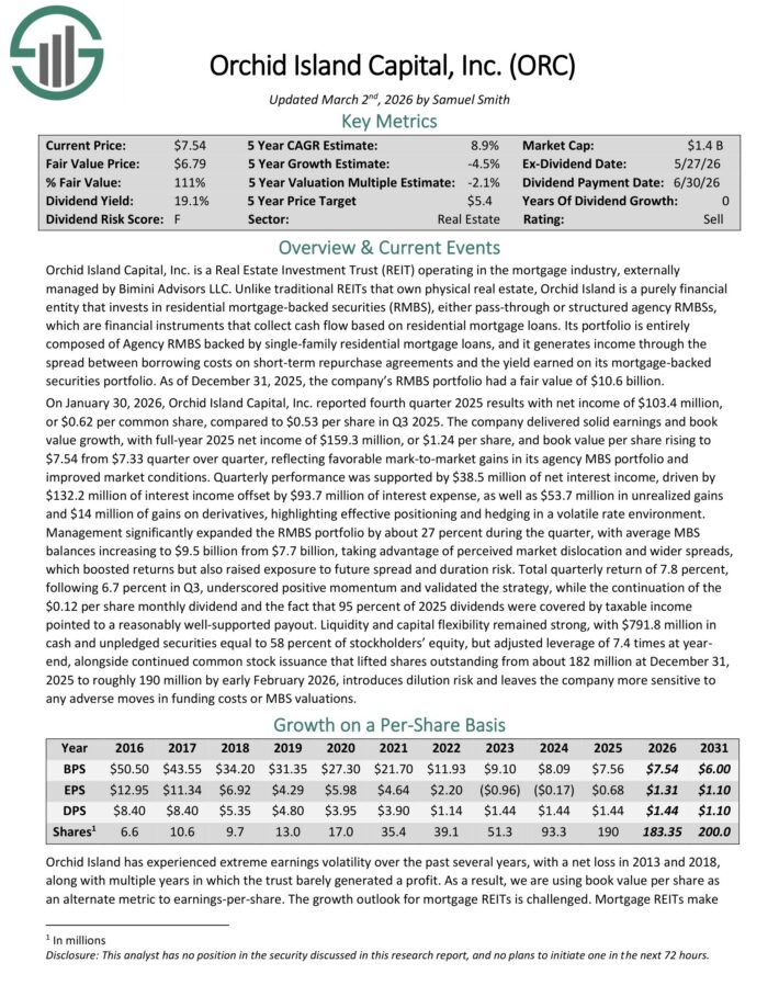 - High-Yield REIT No. 2: Orchid Island Capital (ORC)