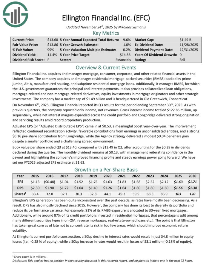 - High-Yield Monthly Dividend Stock #11: Ellington Financial (EFC)