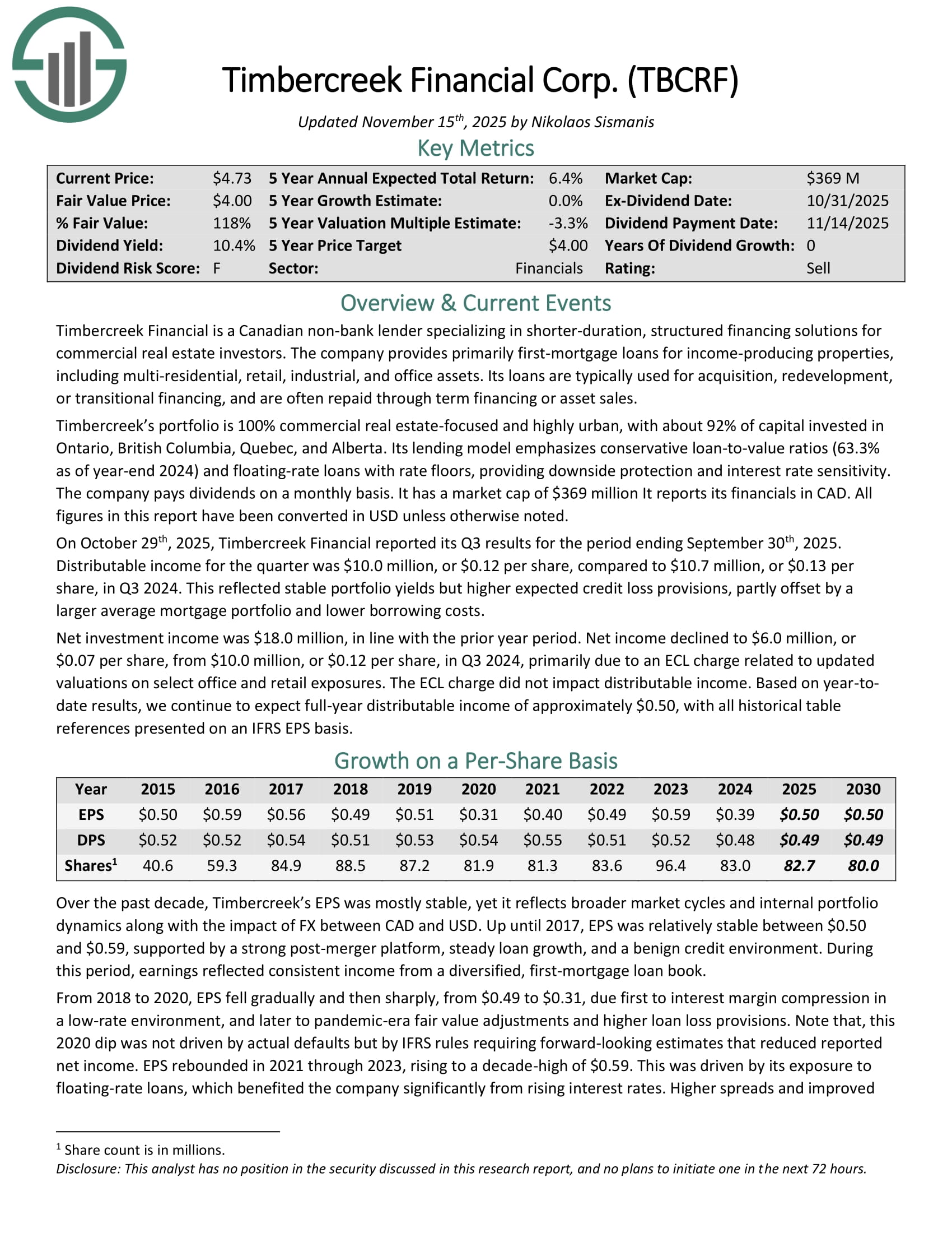 - High-Yield Monthly Dividend Stock #15: Timbercreek Financial Corp. (TBCRF)