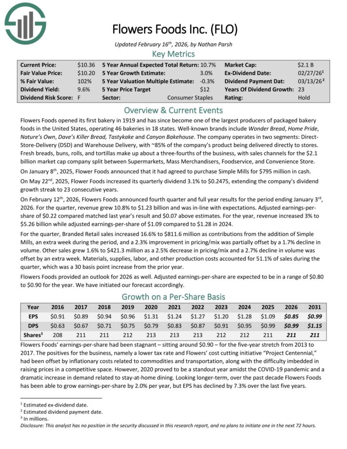 Flowers Foods provided an outlook for 2026 as well. Adjusted earnings-per-share are expected to be in a range of $0.80 to $0.90 for the year.
