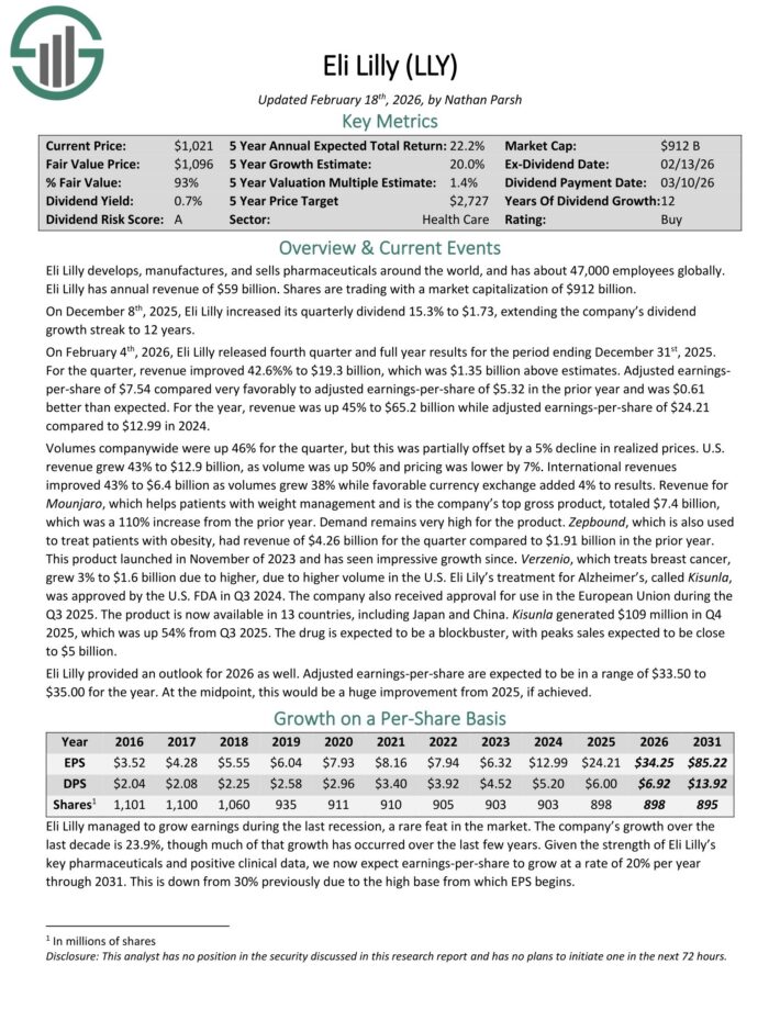 Click here to download our most recent Sure Analysis report on LLY (preview of page 1 of 3 shown below):