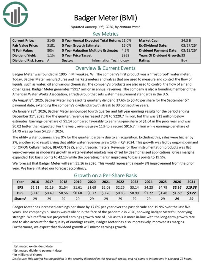 - Fast Growing Dividend Stock #3: Badger Meter Inc. (BMI)