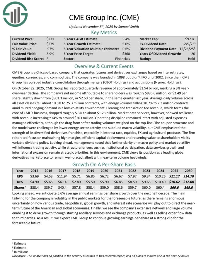 - Fast Growing Dividend Stock #1: CME Group Inc. (CME)