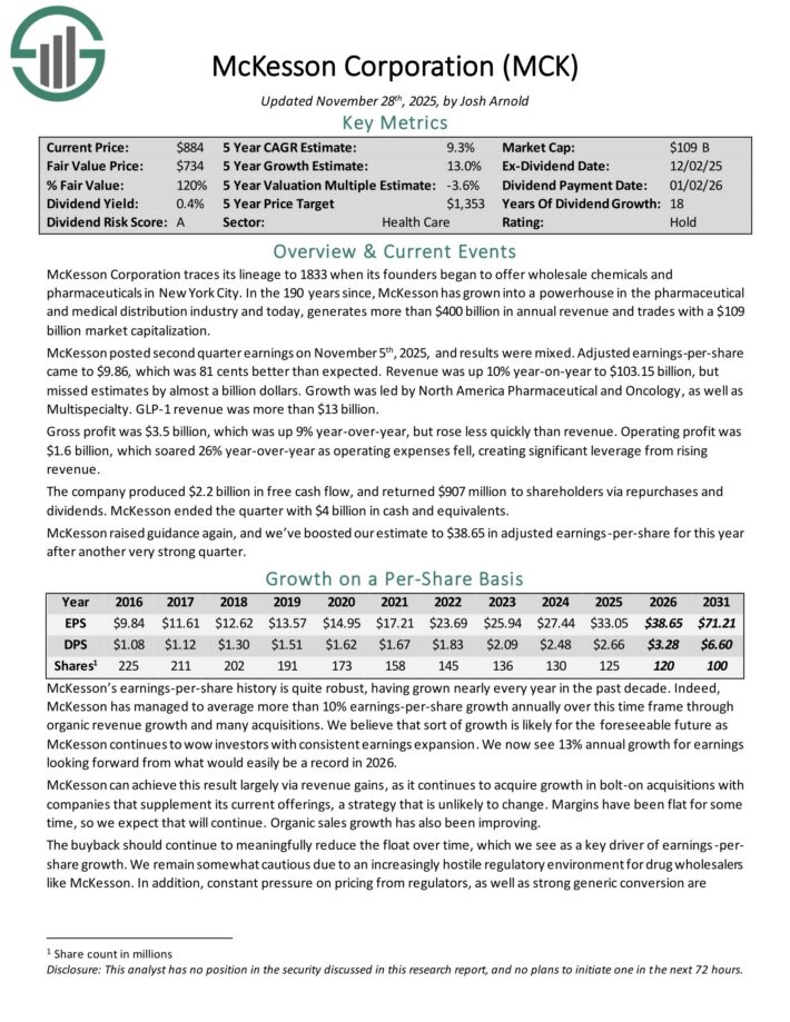 McKesson posted second quarter earnings on November 5th, 2025, and results were mixed. Adjusted earnings-per-share came to $9.86, which was 81 cents better than expected.