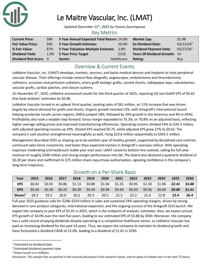 - Fast Growing Dividend Stock #4: Lemaitre Vascular (LMAT)