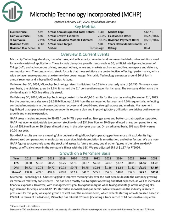 - Fast Growing Dividend Stock #9: Microchip Technology (MCHP)
