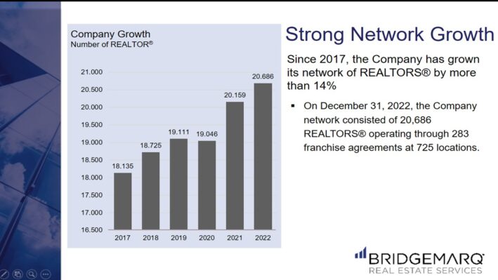 Since 2017, the company has grown the number of REALTORS by more than 13%. As a result, it now has 20,564 partners operating through 282 franchise agreements at 723 locations.