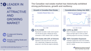 Bridgemarq has a dominant business position in Canada. Through its immense network of REALTORS, the company participated in over 70% of the total home resales in Canada. Bridgemarq’s brands attract franchisees thanks to their reputation and the technological advantages they provide.