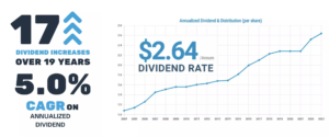 Beyond its high dividend yield, the stock is also quite unique because it pays monthly dividends instead of the traditional quarterly distribution schedule. Monthly dividend payments are highly superior for investors that need to budget around their dividend payments (such as retirees).