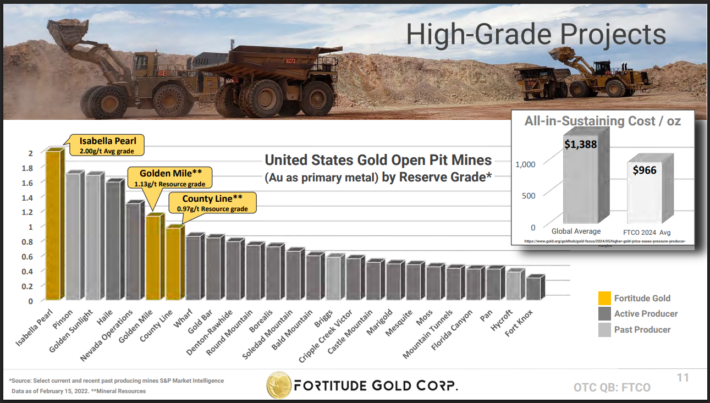 Moreover, Fortitude Gold enjoys another key competitive advantage: namely, the exceptional grade of Isabella Pearl Mine.