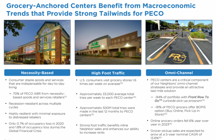 However, Phillips Edison is well-protected from this trend. It generates ~70% of its rental income from retailers that provide necessity-based goods and services and has minimal exposure to distressed retailers.