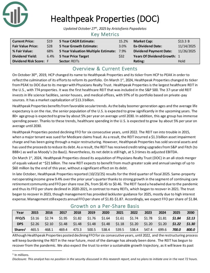 Monthly Dividend Stock #2: Healthpeak Properties (DOC)