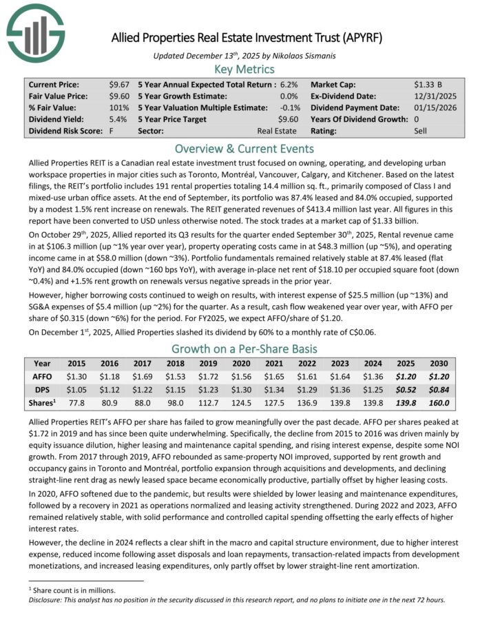 Monthly Dividend Stock #5: Allied Properties Real Estate Investment Trust (APYRF)