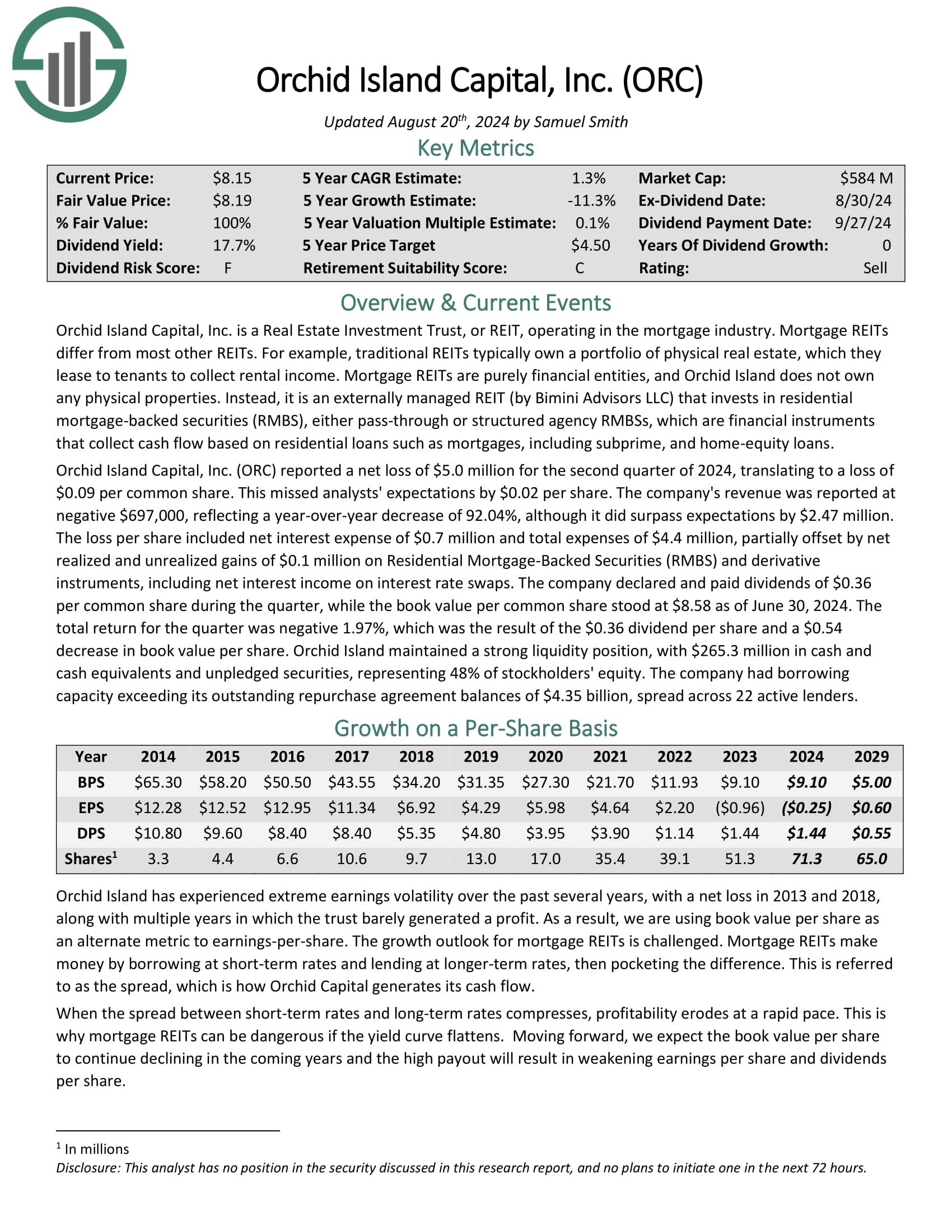 Click here to download our most recent Sure Analysis report on Orchid Island Capital, Inc. (ORC) (preview of page 1 of 3 shown below):