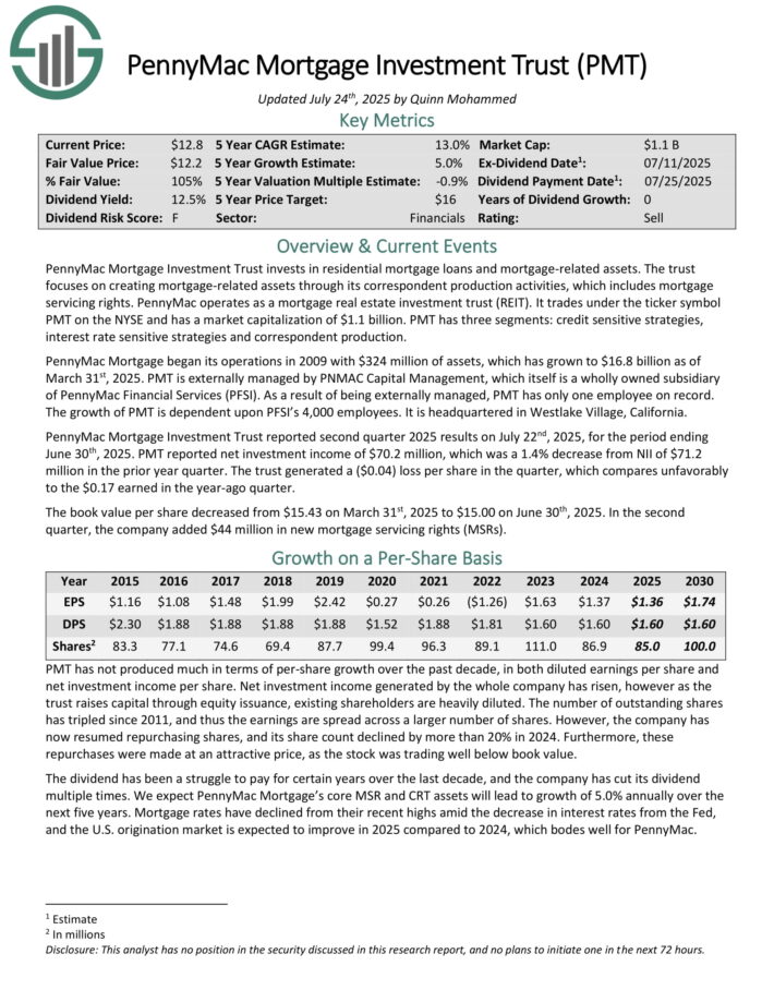 PennyMac Mortgage Investment Trust reported second quarter 2025 results on July 22nd, 2025, for the period ending June 30th, 2025. PMT reported net investment income of $70.2 million, which was a 1.4% decrease from NII of $71.2 million in the prior year quarter.