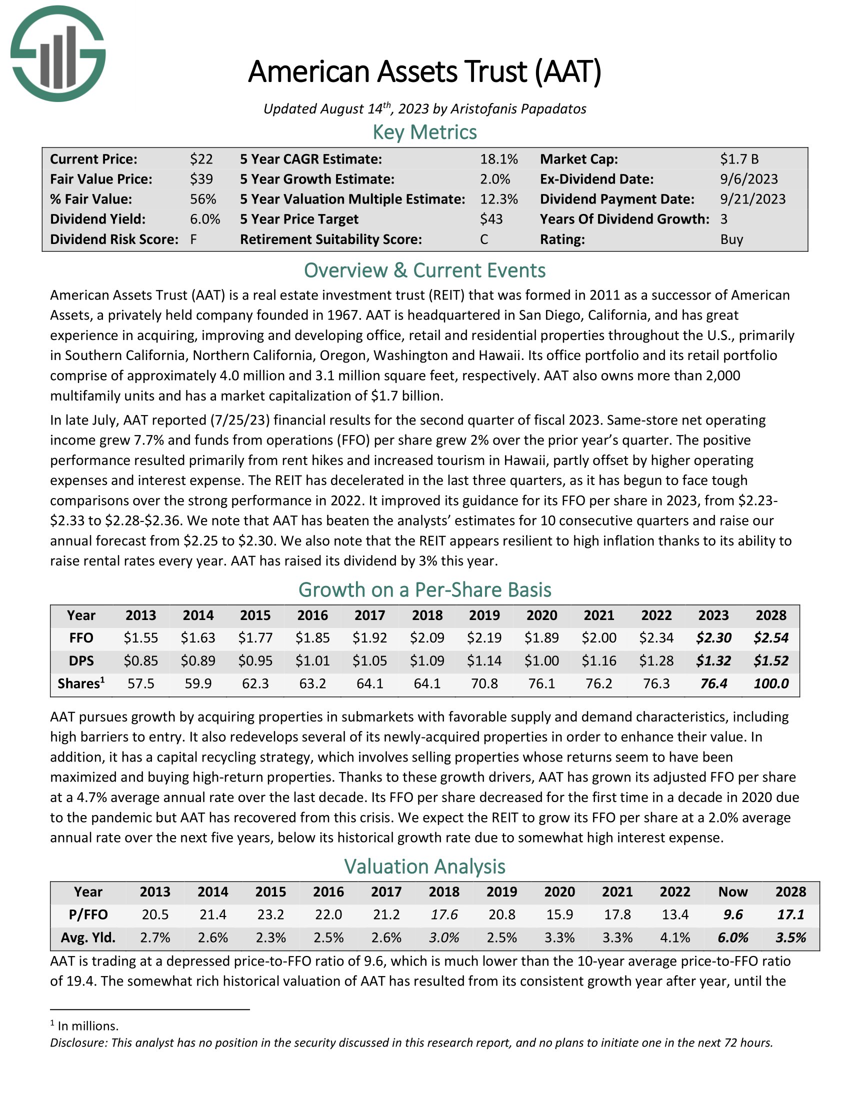 Click here to download our most recent Sure Analysis report on AAT (preview of page 1 of 3 shown below):